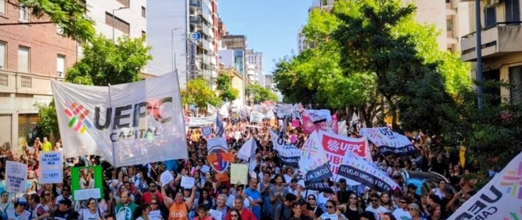 En ese sentido, comenzar con una gran campaña en apoyo a la docencia de Córdoba, de la mano de la UEPC Capital, de Santa Cruz con ADOSAC, de Misiones con UTEM y el MPL, de Chaco con SITECH Federación, de Tierra del Fuego con SUTEF, de Jujuy con el CEDEMS y el Hormiguero de ADEP, de Río Negro con UnTER, de Catamarca y Corrientes con los procesos autoconvocados. A todos los debemos seguir de cerca, acompañar y llevar solidaridad.