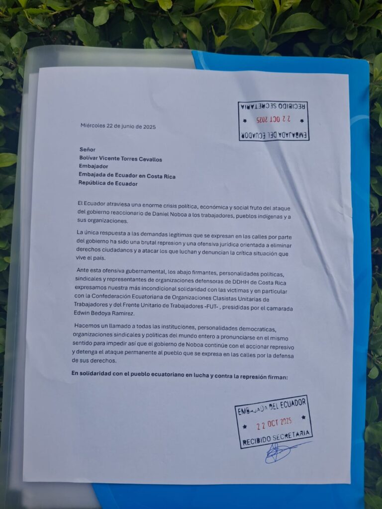 Hay que profundizar la presión internacional en defensa del pueblo ecuatoriano, exigir la libertad de las y los detenidos, el retiro inmediato de las fuerzas represivas, por el NO en la consulta popular de Noboa y rechazar el intento de convertir a Ecuador en una república bananera. ¡Viva la lucha del pueblo ecuatoriano! ¡Abajo Noboa y su plan de hambre y represión!