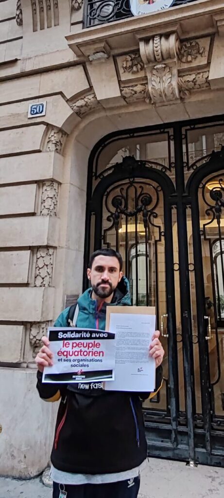 Las movilizaciones en distintas ciudades del mundo son una respuesta internacionalista frente al intento del gobierno ecuatoriano de imponer un brutal paquete de ajuste dictado por el FMI, acompañado de una represión que ya dejó muertos, heridos y centenares de detenidos. Desde Buenos Aires hasta Barcelona, pasando por Francia o Costa Rica, militantes y organizaciones hermanas de la LIS se concentraron frente a las sedes diplomáticas ecuatorianas para denunciar la criminalización de la protesta y respaldar la lucha del pueblo trabajador, indígena y la juventud del Ecuador. Y en los próximos días iremos publicando las otras acciones que se han realizado.