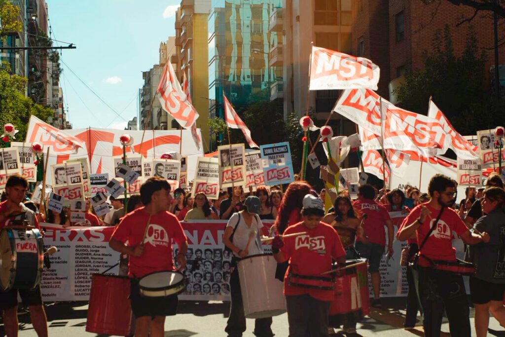 Eso es lo que impulsamos desde el MST en el Frente de Izquierda Unidad, construyendo un bloque junto a sindicatos combativos como UEPC Capital y UTS, organizaciones de izquierda, estudiantiles y sociales que fuimos parte de la marcha unitaria. Al inicio de la movilización, representantes de las organizaciones que conformamos el bloque leímos el documento unitario de Plaza de Mayo que denuncia los crímenes de la dictadura y de la Triple A, exige justicia y castigo y denuncia el negacionismo y la reivindicación del terrorismo de Estado que hoy realiza el gobierno de Milei.