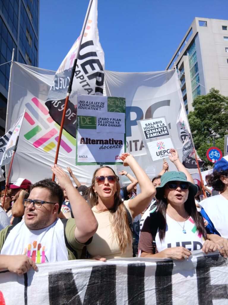 La contundencia de la movilización fue una respuesta directa a quienes intentan desalentar la organización: existe voluntad en las bases de sostener la pelea. La columna de UEPC Capital —de la que Alternativa Docente forma parte— se extendió a lo largo de ocho cuadras, mientras que la dirigencia provincial fue abucheada al concluir la marcha frente a su propia sede.