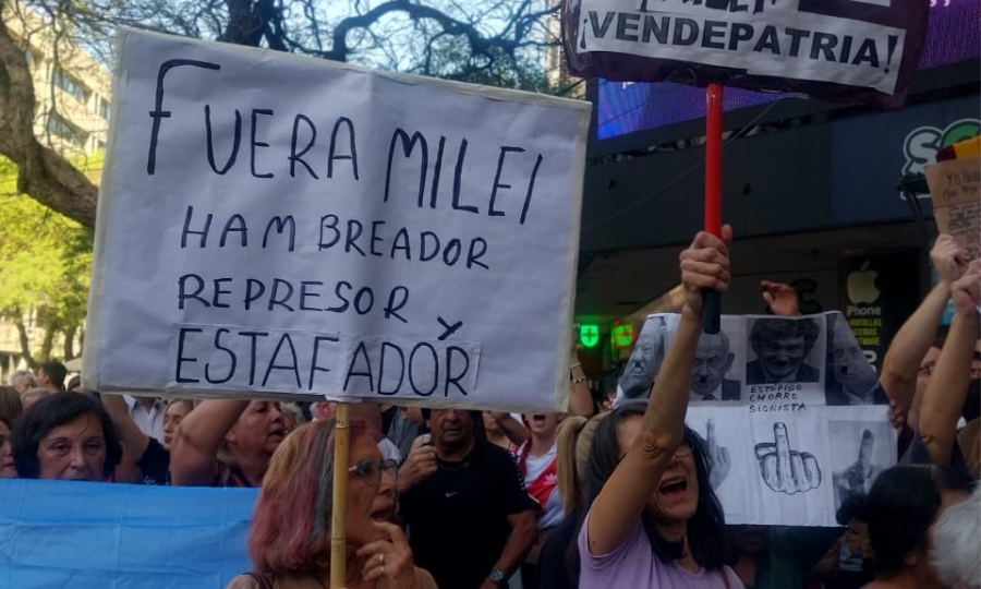 Otra caminata fallida, otro acto trunco para el Liberfacho que nos preside. De nada valieron las maniobras para tomar desprevenido al pueblo de Mendoza. Milei fue abucheado y rechazado por una contundente concentración que le impidió llegar y mucho menos avanzar por la peatonal citadina. Se limitó a hablar desde un megáfono ante unos 300 militantes, desde una lejana calle Garibaldi a más de 100 metros del destino predeterminado, y pegarse una media vuelta forzada de su camioneta, escoltado por sus seguidores más fanáticos, mientras el resto de sus militantes, desconcertados se dispersaban, unos bajaban hacia donde supuestamente iba a hablar el presidente. Otros directamente se fueron dispersando poco a poco, cabizbajos, confundidos, rechazados por esa combativa e improvisada concentración, con los jubilados a la vanguardia, que no dejó de increparlos a ellos e insultar al presidente en más de una hora de idas y vueltas, de indefiniciones. Volvió a primar el miedo de los libertarios que, una vez más fueron ellos los que tuvieron que correr.