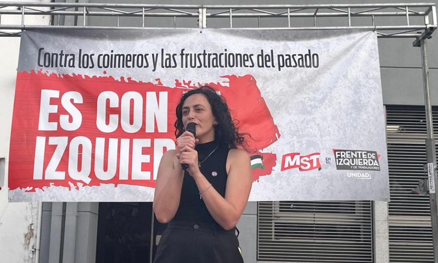 Este 26 de octubre es con la izquierda, porque cualquier otra opción es una opción de mentiras, de coima y estafa. Este 26 de octubre es con la izquierda, porque somos la fuerza de los trabajadores, de las mujeres, de la juventud, de los jubilados, que todos los días les ponemos el cuerpo para salir adelante. Y es con la izquierda porque no transamos, porque siempre vamos a estar del mismo lado, del lado de la lucha y del lado de construir el mundo que nos merecemos, el mundo que soñamos y el mundo que conquistaremos en unidad, con fuerza, en la calle y con toda la energía revolucionaria que nosotros tenemos”, finalizó.