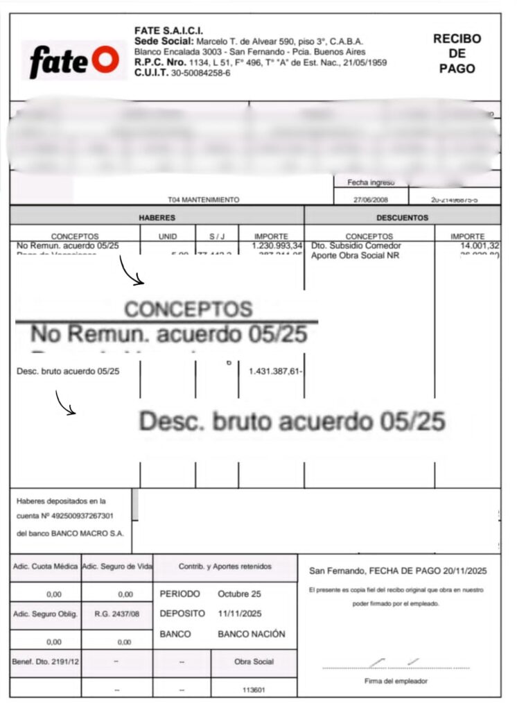 La empresa FATE sigue imponiendo una falsa crisis que tranquilamente puede afrontar, debido a las ganancias de tantos años. Se demostró en 2024 que vienen de 4 años de ganancias por 190 millones de dólares y por esto en agosto de 2024 el PPC fue rechazado y homologado en la Secretaría de Trabajo de Nación.