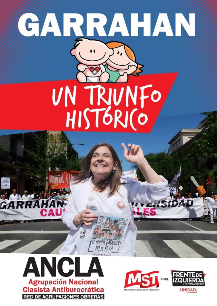 Por más que Milei quiera mostrar fuerza, se puede ganar como lo muestra la victoria enorme del hospital Garrahan, que logró el 61% de aumento salarial, en defensa de la salud de nuestras infancias y del presupuesto, como causa nacional. De ahí la importancia de debatir las conclusiones de este triunfo y defender a sus referentes, como nuestra compañera Norma Lezana (secretaria general de la APyT) y a todos los perseguidos por el gobierno, en su intento de revancha de los derrotados.