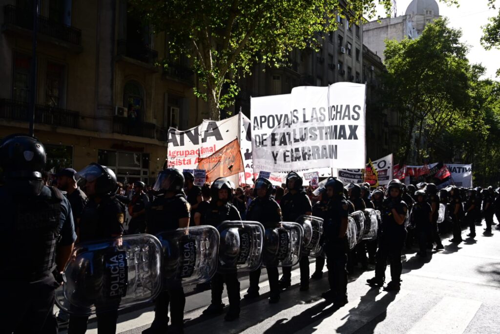 • Persecución política: el registro de organizaciones y el cobro de “gastos operativos” a los sindicatos y movimientos sociales configuran una persecución económica y política inédita, que busca desarticular cualquier forma de resistencia organizada. Imposición a quienes sean detenidos en este marco, de una restricción perimetral de cientos de metros de las zonas donde fueron detenidos –Congreso, Plaza de Mayo, Etc-. Vulnerando así, de manera sistemática, el derecho a la protesta.