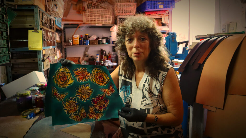 Hoy la protagonista da vida a carteras y billeteras bajo la marca “Espejismo”. Un nombre que nació de un chiste familiar: una promesa de su exmarido tucumano de “llegar a ser alguien” en la gran ciudad. El proceso es metódico. Cortan el cuero, lo prensan y luego lo tiñen. Es un trabajo en serie, adaptado a la demanda.