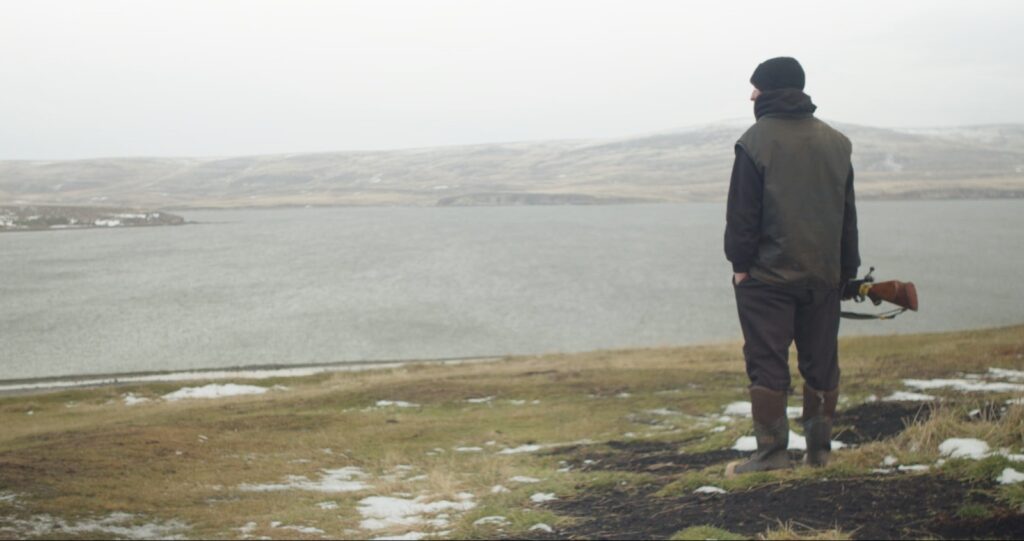 El largometraje, una coproducción de Argentina y Reino Unido y estrenado en el BAFICI 27 en Competencia Internacional, comienza con una experiencia de realidad virtual inmersiva sobre las islas impulsada por la municipalidad de Pilar, imágenes que refuerzan la posición de que las Malvinas son un campo de resistencia de soberanía pero sin arraigo en la materialidad concreta.