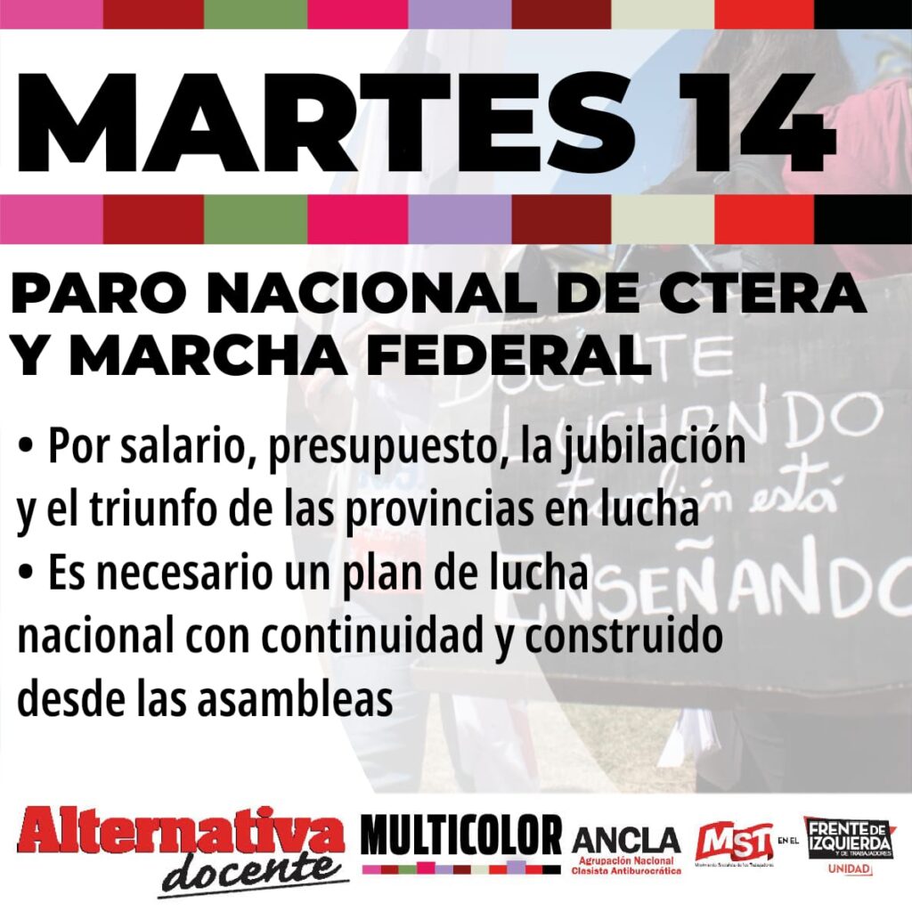 EL 14 VAMOS CON TODO AL PARO NACIONAL DOCENTE, CON MOVILIZACIÓN