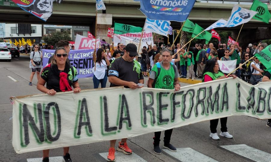 Tal como sucedió a nivel nacional, en Mendoza la CGT y la CTA se vieron obligadas a llamar a paro, pero no hubo acuerdo para movilizar de forma contundente. Solo los gremios nucleados en las CTA, ATE, Judiciales más AMPROS, actores, movimientos sociales y la izquierda se concentraron en el Nudo Vial desde las 10.30 hs. Varios centenares de personas nos reunimos allí hasta el mediodía para expresar el rechazo a la reforma laboral mientras automovilistas y camioneros saludaban tocando bocina en un gesto de apoyo. Mención aparte merece el SUTE que llamó a parar y movilizar al tiempo que decía que los docentes debíamos impulsar asambleas en las escuelas (¿?) y finalmente por la mañana llamó a concentrarse en la Legislatura a partir de las 11 hs, en una convocatoria que por supuesto fue marginal.