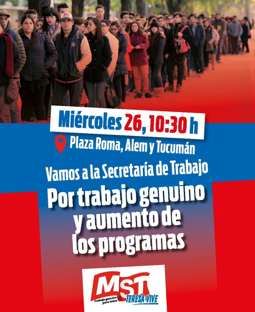 Ante estos ataques, este miércoles 26 desde el MST “Teresa Vive”, Territorios en Lucha, la UTEP y el Bloque de Lucha Piquetero vamos a protagonizar una Jornada Nacional en defensa del trabajo, los ingresos y los derechos sociales. Con una fuerte movilización a la Secretaría de Trabajo de la Nación (Alem 650), concentrando desde las 10.30 h en Plaza Roma (en Alem y Tucumán) en el marco del Consejo del Salario. Y habrá marchas, cortes y protestas en el país y en localidades bonaerenses como Mar del Plata y Bahía Blanca.