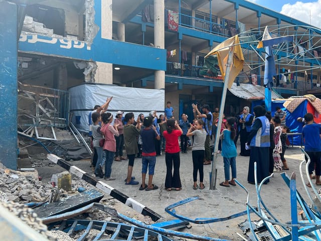 Actividades artísticas y deportivas en una escuela dañada de Nuseirat, Gaza