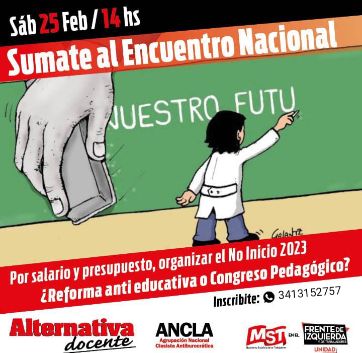 El sábado 25, a las 14 hs, te invitamos a participar del XIº Encuentro Nacional de Alternativa Docente, ANCLA. Para intercambiar con docentes de todo el país y debatir un programa para transformar radicalmente la escuela pública. Junto a una alternativa política con el MST y el Frente de Izquierda Unidad, ante ambas coaliciones que sostienen el ajuste.