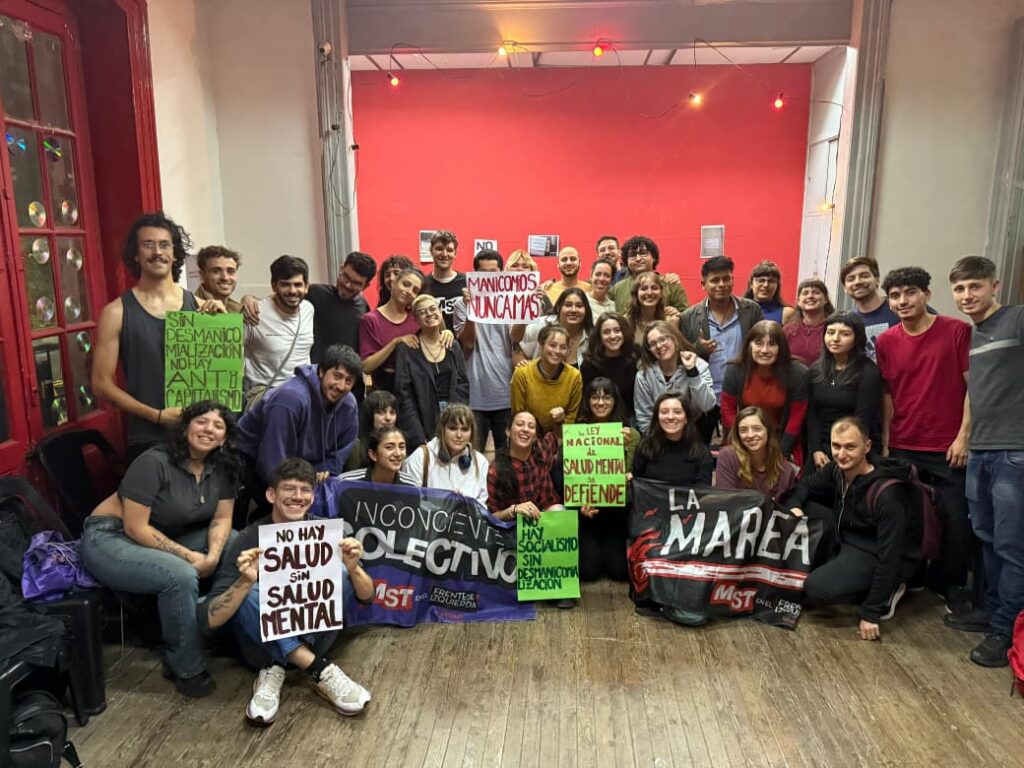 Este año se cumplieron 15 años de la sanción de la LNSM y desde Inconciente Colectivo junto a otres compañeres del campo de la salud mental empezamos a debatir sobre la necesidad de hacer un balance respecto de su aplicación y sus limitaciones a día de hoy. Con la experiencia del espacio de formación teórica empezamos a elaborar un documento en el que se vuelcan procesos históricos, la contradicción de todos los gobiernos de no llevar los cambios estructurales de fondo que nos plantea la LNSM, el rol del sector privado en el sostenimiento de la existencia de los manicomios de la mano de los laboratorios, las farmacéuticas y las clínicas privadas, la fragmentación y descentralización del sistema de salud en nuestro país, la necesidad del sistema capitalista de recrudecer nuestras condiciones de existencia y nuestro lugar como futures profesionales de la salud mental en cómo transformar esa realidad, la de todes les trabajadores y usuaries del sistema de salud.