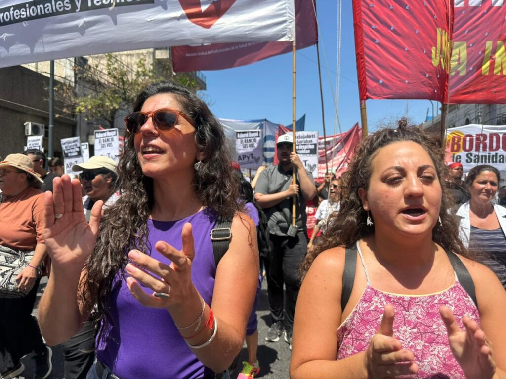 Luego de una radio abierta donde se expresaron los trabajadores de dicho centro de salud, partió la columna compuesta por distintas organizaciones sindicales, sociales y políticas rumbo a la Plaza Congreso.
