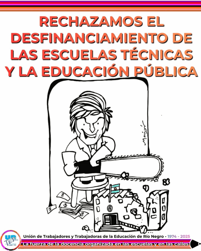 En nuestra provincia de Río Negro, el presupuesto destinado a la educación técnica es insuficiente, no llega a cubrir todo el ciclo lectivo, obligando a que sea la comunidad educativa quien financie una parte de la compra de materiales o incluso herramientas. Esto solo causa un proceso de privatización indirecta de la ETP. Es que tanto el ajuste nacional como el provincial, pegan directo a los secundarios técnicos debido al altísimo costo de renovar maquinarias antiguas (e incluso obsoletas) y hacerse de la materia prima necesaria.