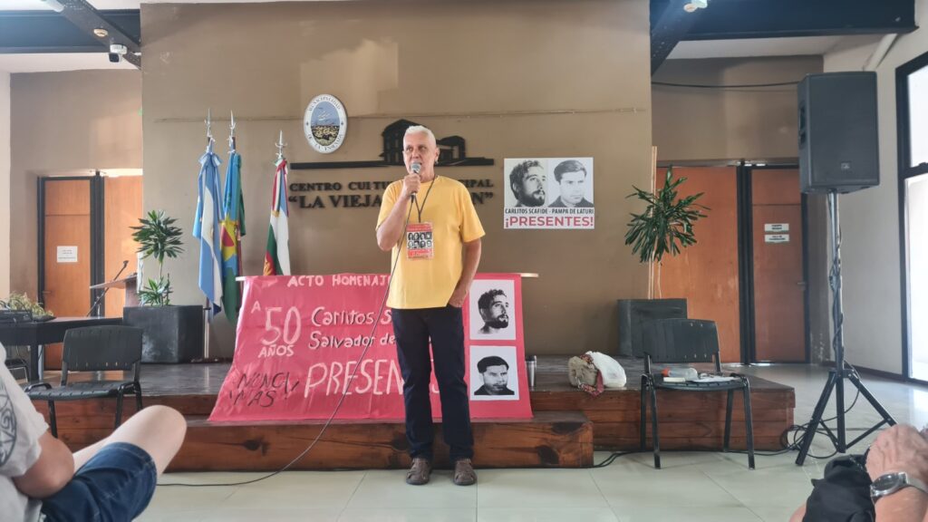 También fue muy conmovedora la intervención de nuestra compañera Mabel Formigo, pareja de Carlitos, quien habló con profundo afecto sobre el compañero que había compartido su vida. Mabel no solo relató los momentos difíciles vividos durante el secuestro, sino que también reivindicó a Carlitos como un luchador revolucionario comprometido con el socialismo, resaltando sus cualidades humanas, su entrega y su incansable lucha por un mundo más justo.